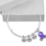 This is a wonderful violet ribbon awareness key chain. Each key chain is sterling silver plated and has a pretty violet ribbon charm. Makes a wonderful gift. Each key chain can come in a gift box with cotton insert.