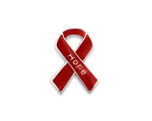 This red ribbon beaded charm bracelet has a red ribbon charm on a silver beaded bracelet with a toggle clasp. The bracelet is approximately 7 1/2 inches with elastic so it fits most any wrist and the charm is approximately 3/4 inch tall by 1/2 inch wide. The bracelet can come in a gift box with cotton insert.