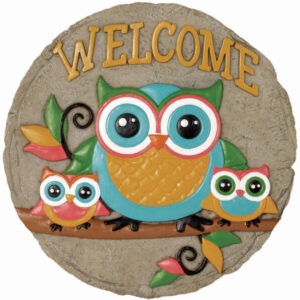 Add some color to your garden, patio or home!  Stepping stones are made of durable indoor/outdoor resin and hand painted. Each stepping stone is approximately 9″ in diameter. Our stones also include hardware on the back so it can be used as a wall plaque.