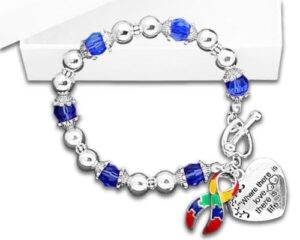 - Measuring approximately 7 1/2 inches, this bracelet is designed for comfortable everyday wear. It makes a thoughtful gift for special occasions or a heartfelt gesture for someone special in your life. Explore our collection of Autism Awareness Jewelry and wear your support with pride.
